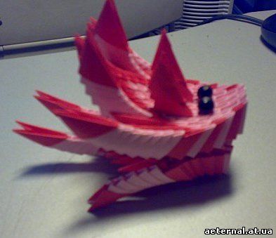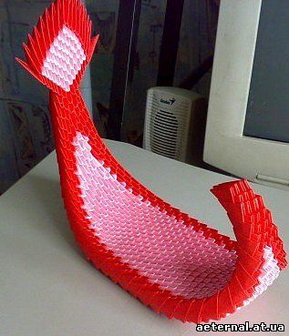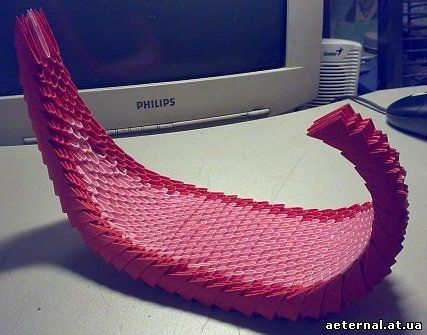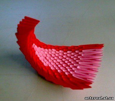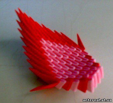 «Лодка-дракон» состоит из 847 модулей размером 32/1 листа А4. Всего нам нужно 847 модулей 343 красных модулей и 509 розовых.