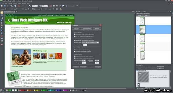 Программа Xara Web Designer 8 сочетает в себе готовые элементы страниц с возможностью личной доработки, шаблоны сайтов и веб страниц, а еще инструменты для создания растровой и векторной графики. Помимо того имеется поддержка гибкой верстки текста на страницах с обтеканием вокруг объектов и проверка правописания по мере набора текста.Презентации создаются или в виде самостоятельных файлов, которые можно смотреть кадр за кадром, либо в виде дистанционного «web-семинара», где докладчик сам управляет ходом презентации для приглашенных посетителей сайта. В отличие от пакета PowerPoint и других приложений для создания «вебинаров», зрителям не надо загружать файлы либо устанавливать другие программы на свой компьютер, для того, что бы просмотреть презентацию – так как, это будут специально сделанные веб страницы.